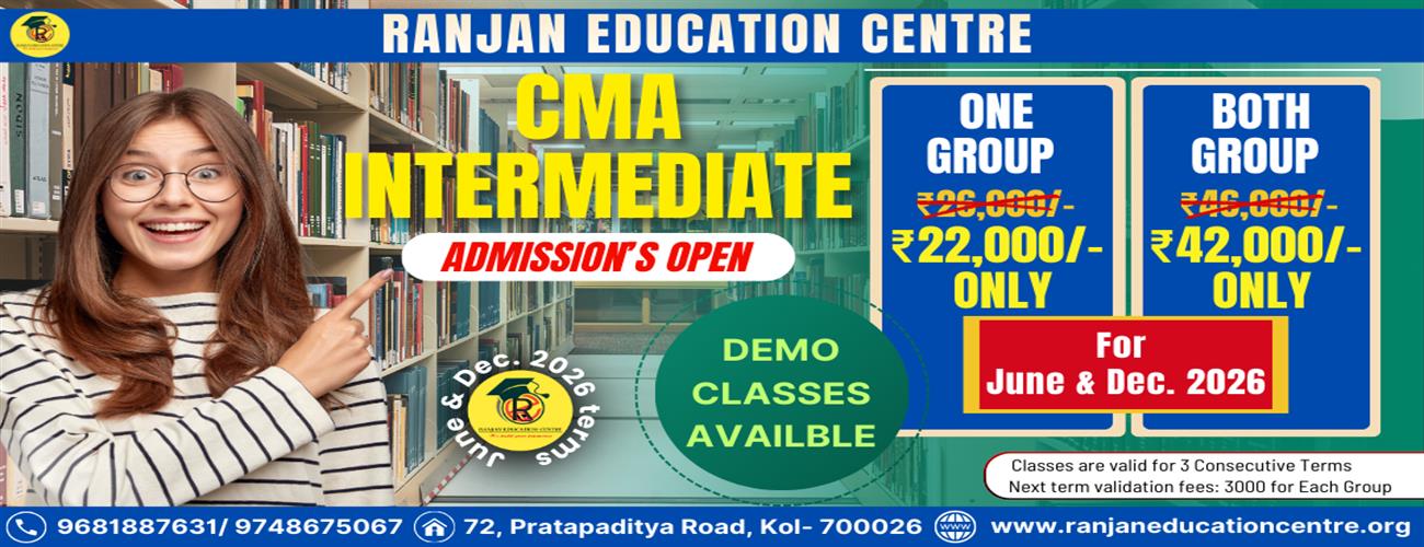 The new CA/ CMA Foundation & Intermediate batches for 2026 has commenced. Demo classes are available. Admission is goinng on.